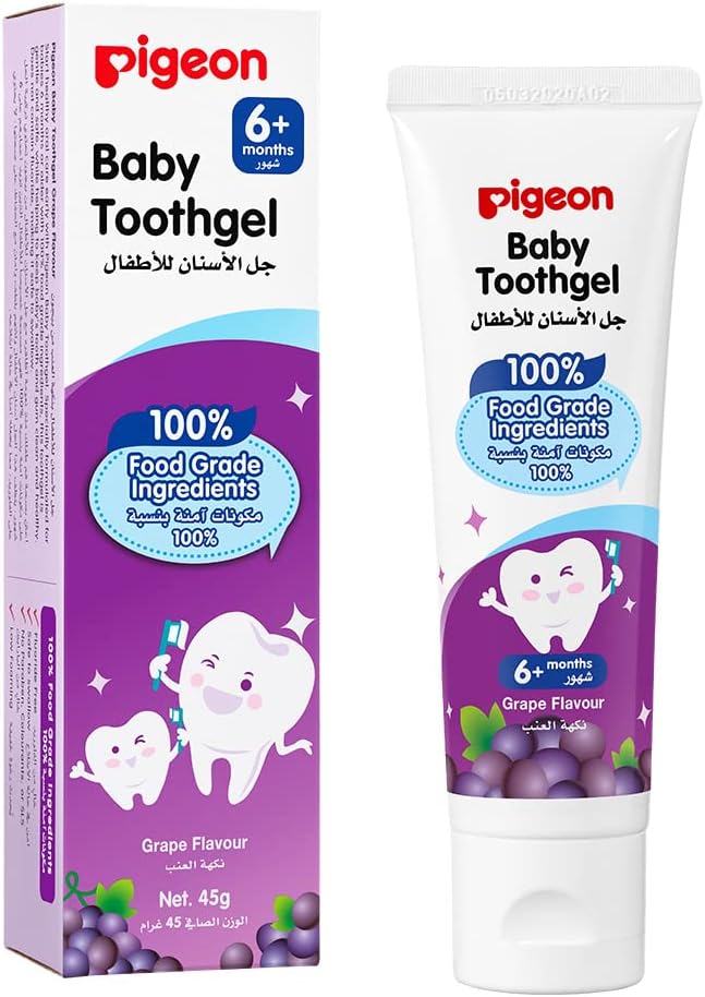PIGEON Baby tooth gel grape flavor  is formulated for babies 6 months or older with 100% food grade ingredients, this tooth gel is gentle & safe.